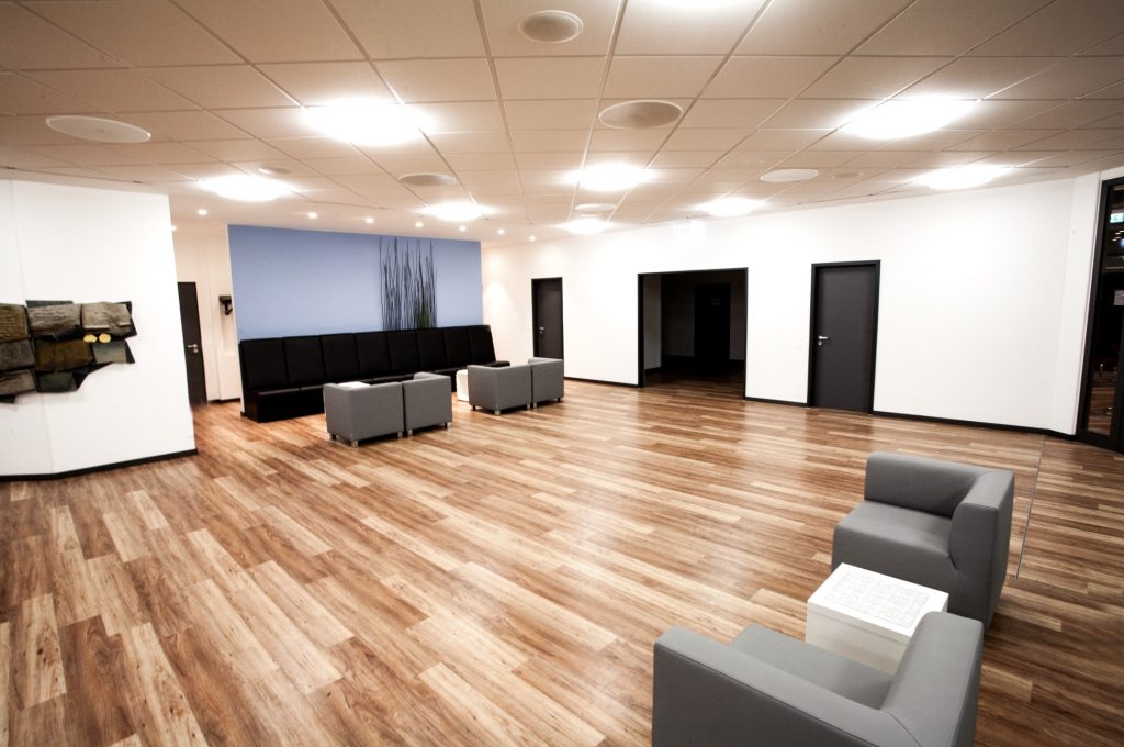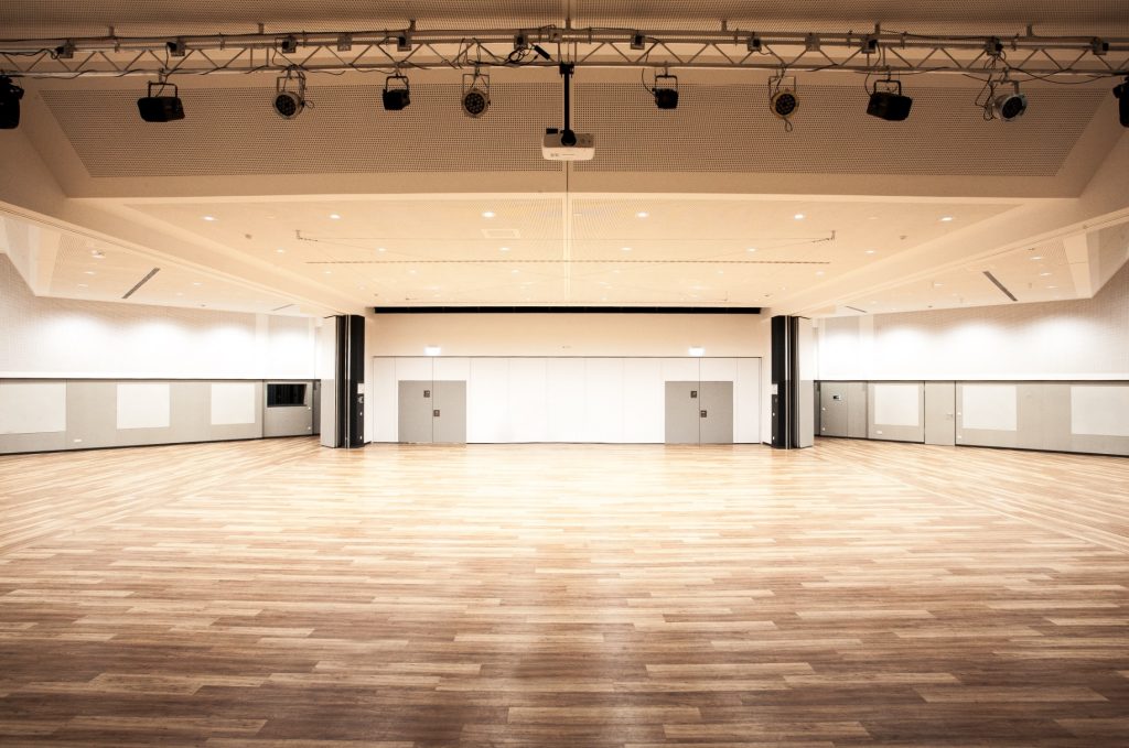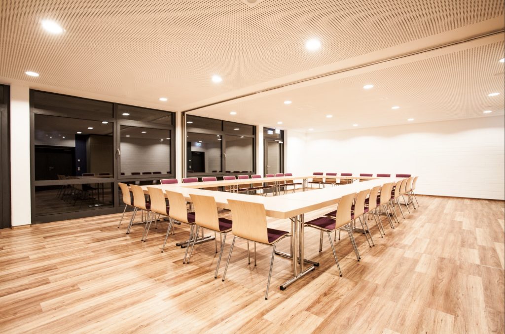 Im Bühnenbereich ist eine moderne Beschallungsanlage sowie Licht- und Netzwerktechnik vorhanden.